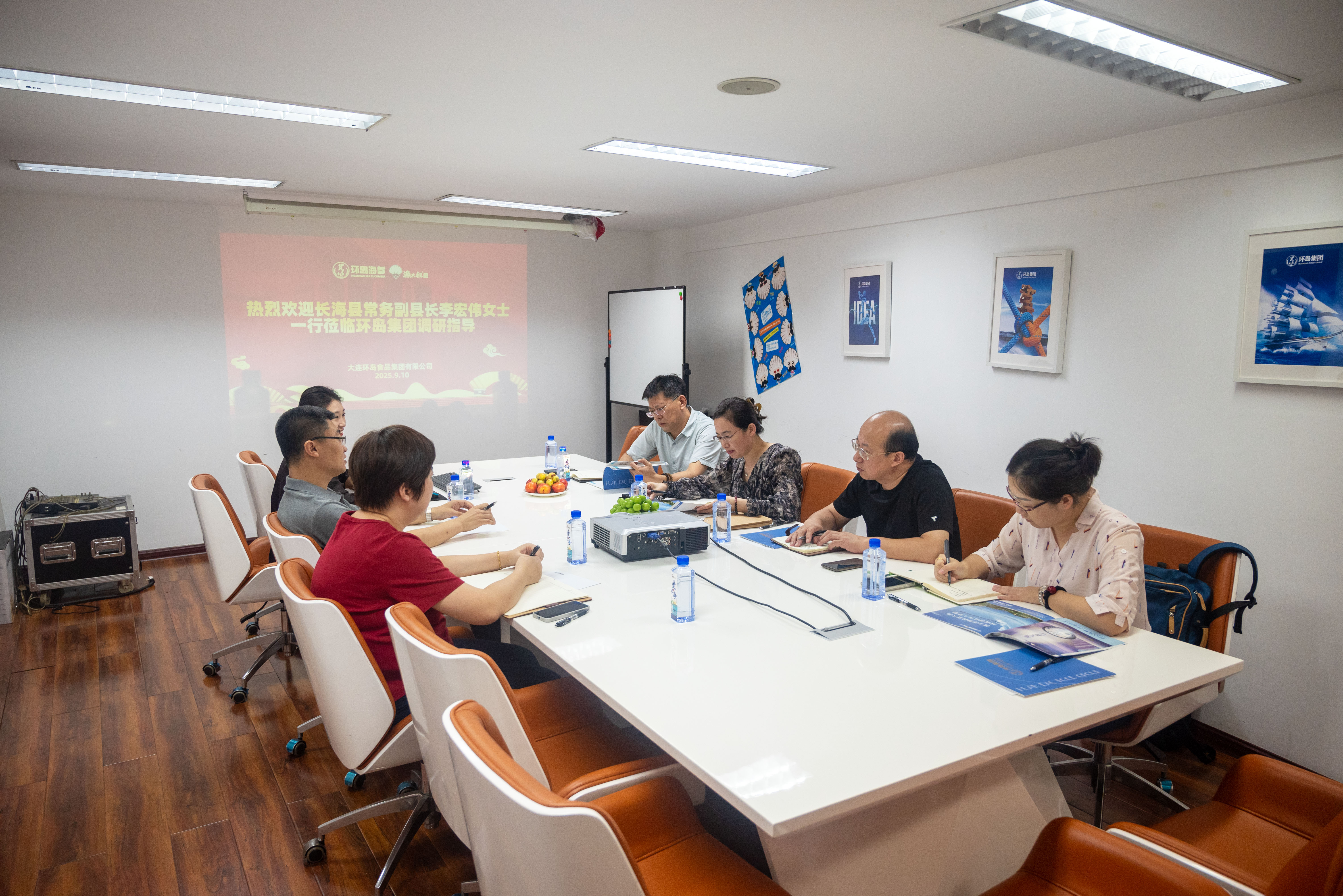 9月10日,長(zhǎng)海縣常務(wù)副縣長(zhǎng)李宏偉 攜縣發(fā)改局、商務(wù)局、統(tǒng)計(jì)局等部門領(lǐng)導(dǎo) 蒞臨環(huán)島集團(tuán)調(diào)研指導(dǎo) 調(diào)研組詳細(xì)了解企業(yè)在海參、海鮮零食、預(yù)制菜等方面的發(fā)展情況。座談會(huì)上,王振東董事長(zhǎng)匯報(bào)了企業(yè)發(fā)展現(xiàn)狀與規(guī)劃。 李宏偉副縣長(zhǎng)對(duì)環(huán)島集團(tuán)在推動(dòng)地方海洋產(chǎn)業(yè)發(fā)展中的作用表示肯定,并表示政府將持續(xù)營(yíng)造良好發(fā)展環(huán)境,助力企業(yè)做優(yōu)做強(qiáng)。 環(huán)島集團(tuán)將不負(fù)厚望,致力于打